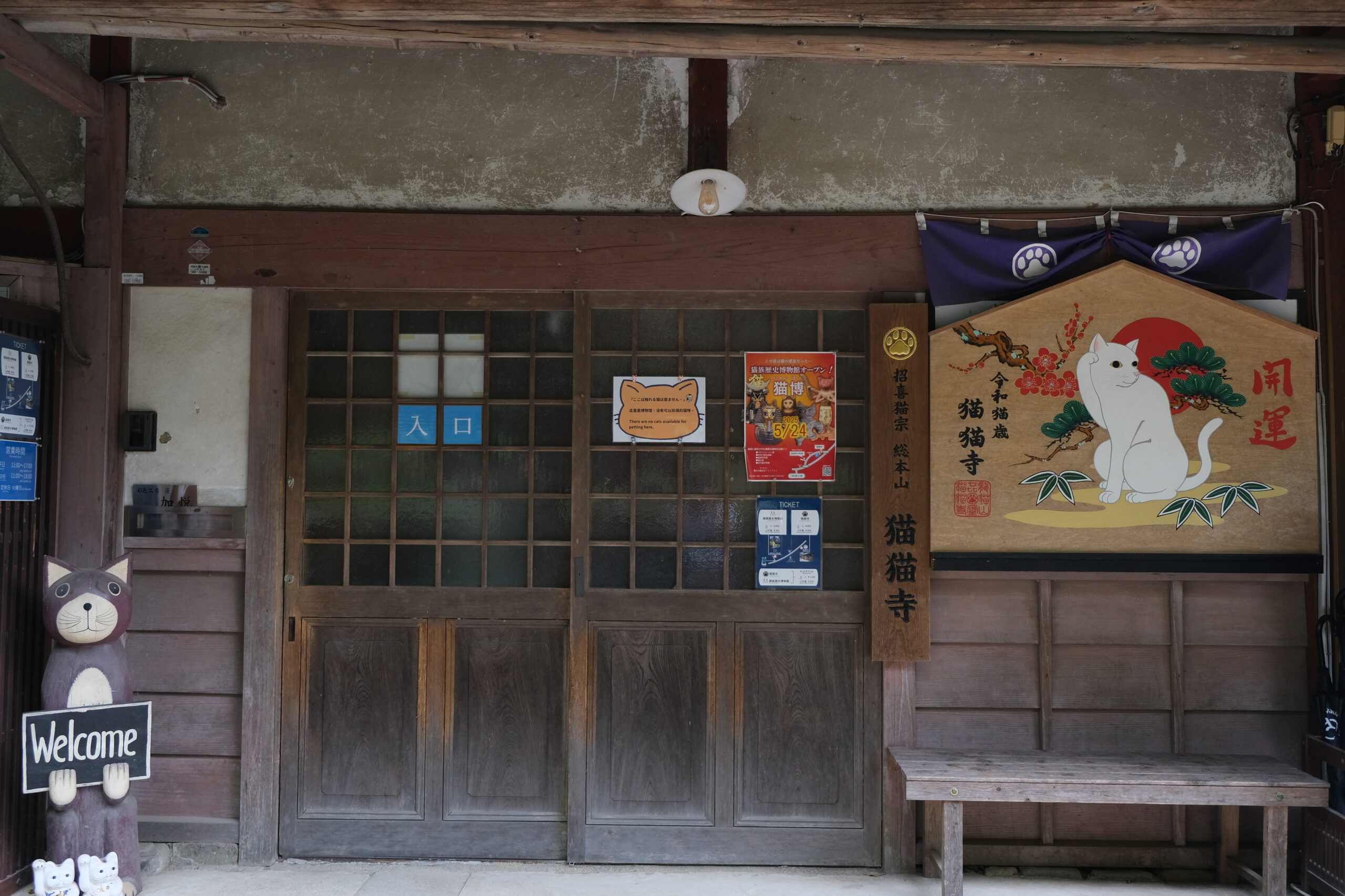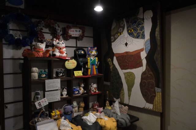 駅を降り、川沿いを登っていくと先ず行き当たるのが猫族歴史博物館、略して猫博(にゃんぱく)です。ここは猫猫寺の別院で、今年(2025年)5月に開館したばかりの猫に特化した博物館です。