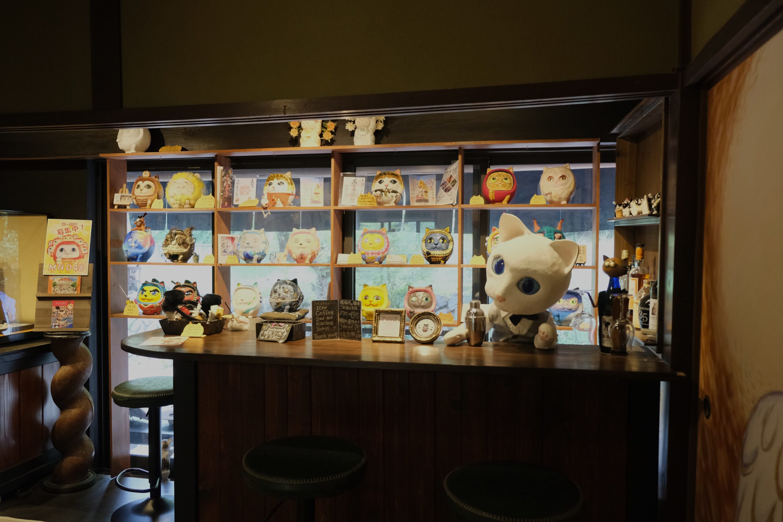 この可愛い猫たちの襖絵は良縁成就の襖絵と言われているそうです。カウンターがあり、そこでジンジャエールとおすすめのスイーツをいただきました。普段飲食はやっていないそうですが、この日はたまたまいただけました。猫マスターの接待は最高!
