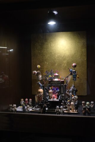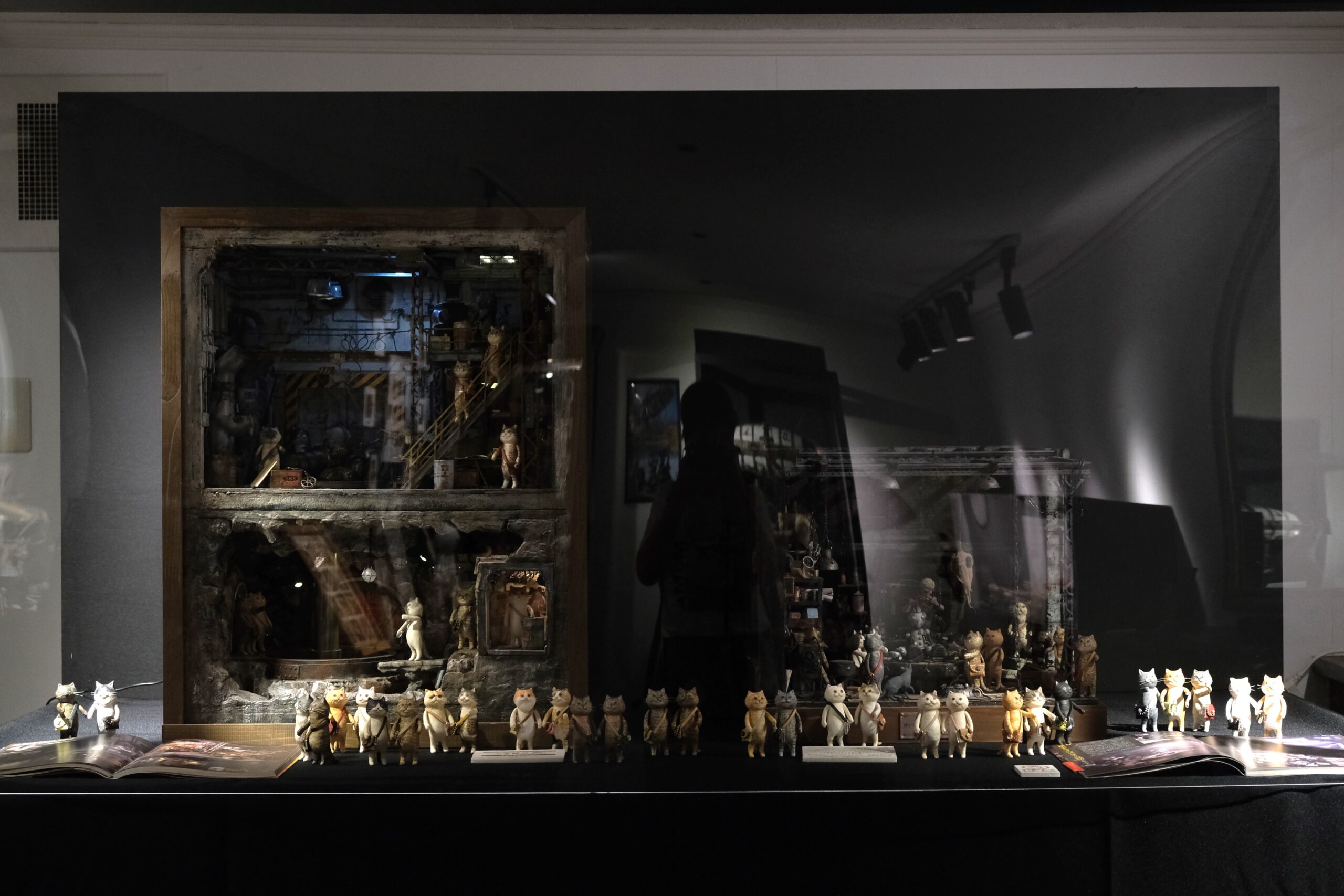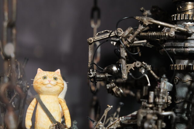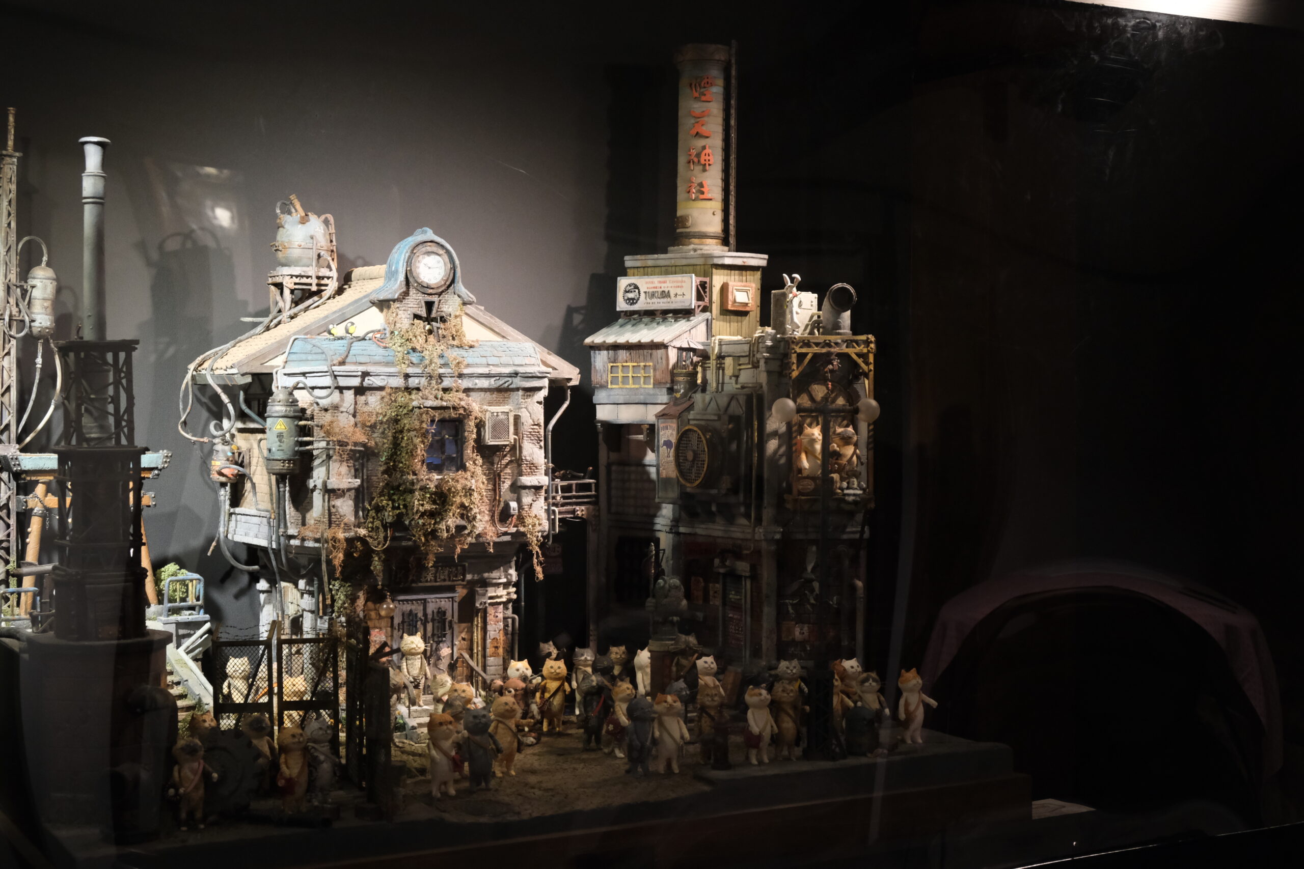 この日、「300匹のどやねこと世界のあだっちゃん展」が開催されていて、とても可愛い「どやねこ」ちゃんと、かっこいいジオラマ建築のコラボを見ることができました。ジオラマの中のねこちゃんたちはかっこいいし、ねこちゃんをいだくジオラマはどこか可愛らしい、1+1=2ではない世界が広がっていました。