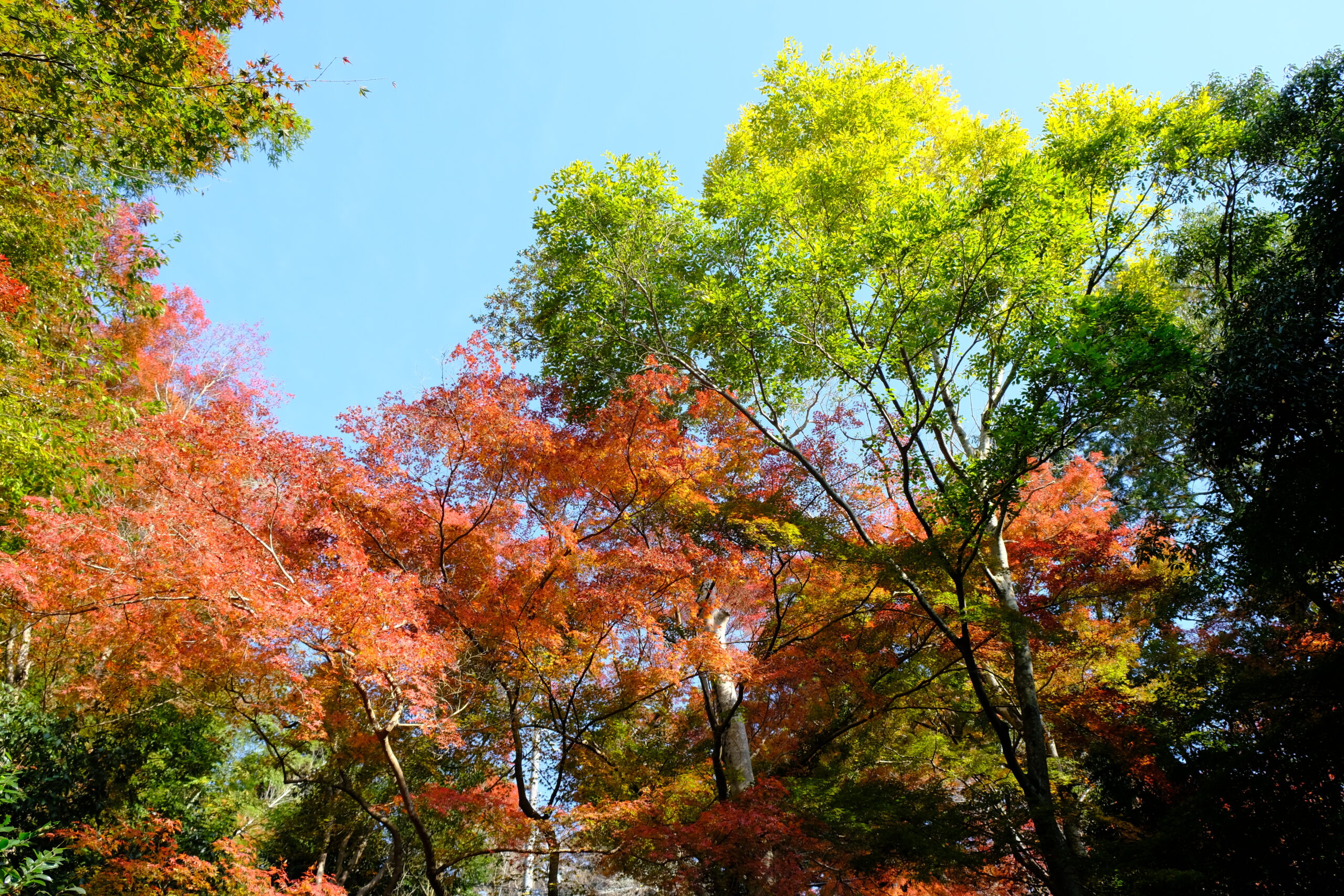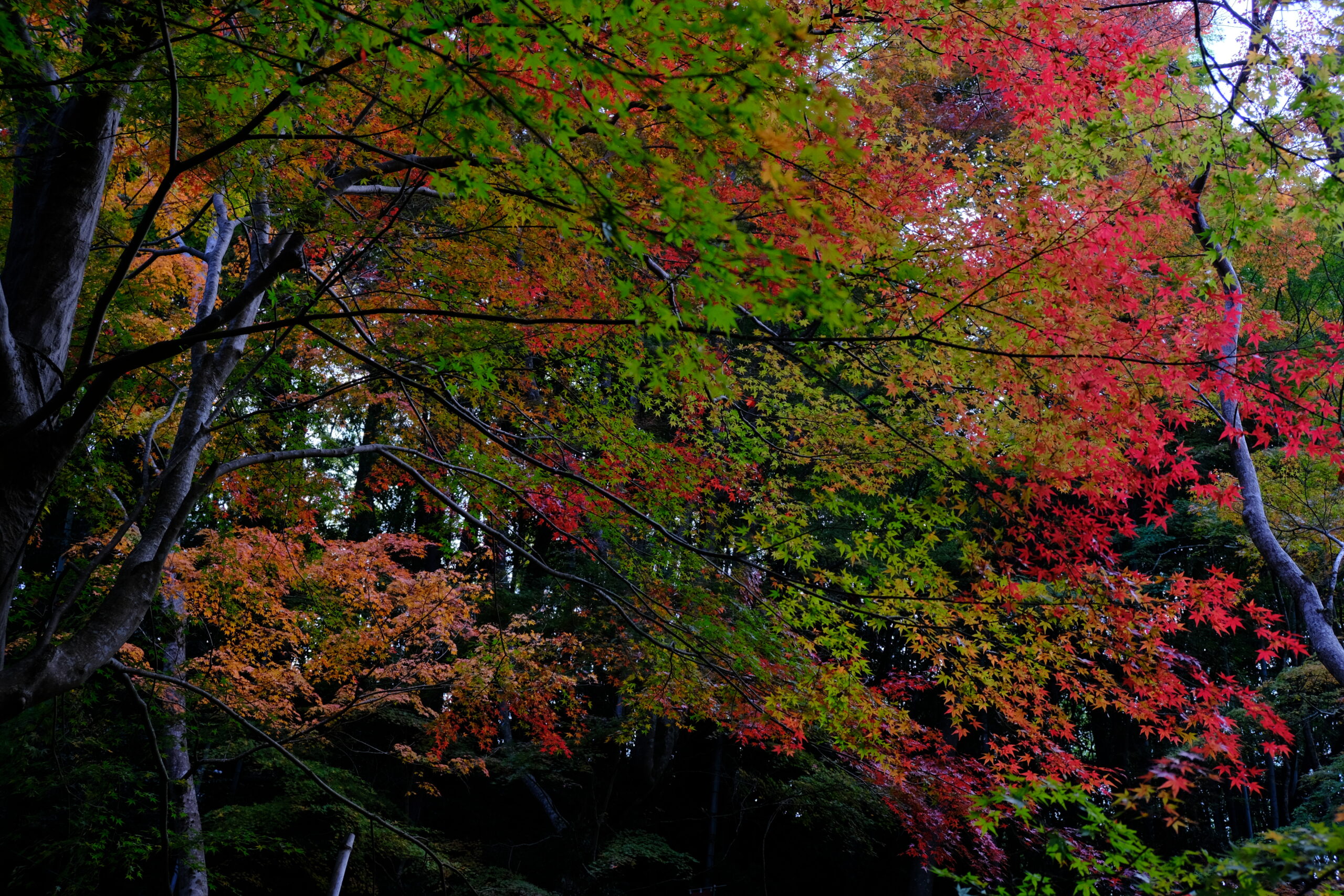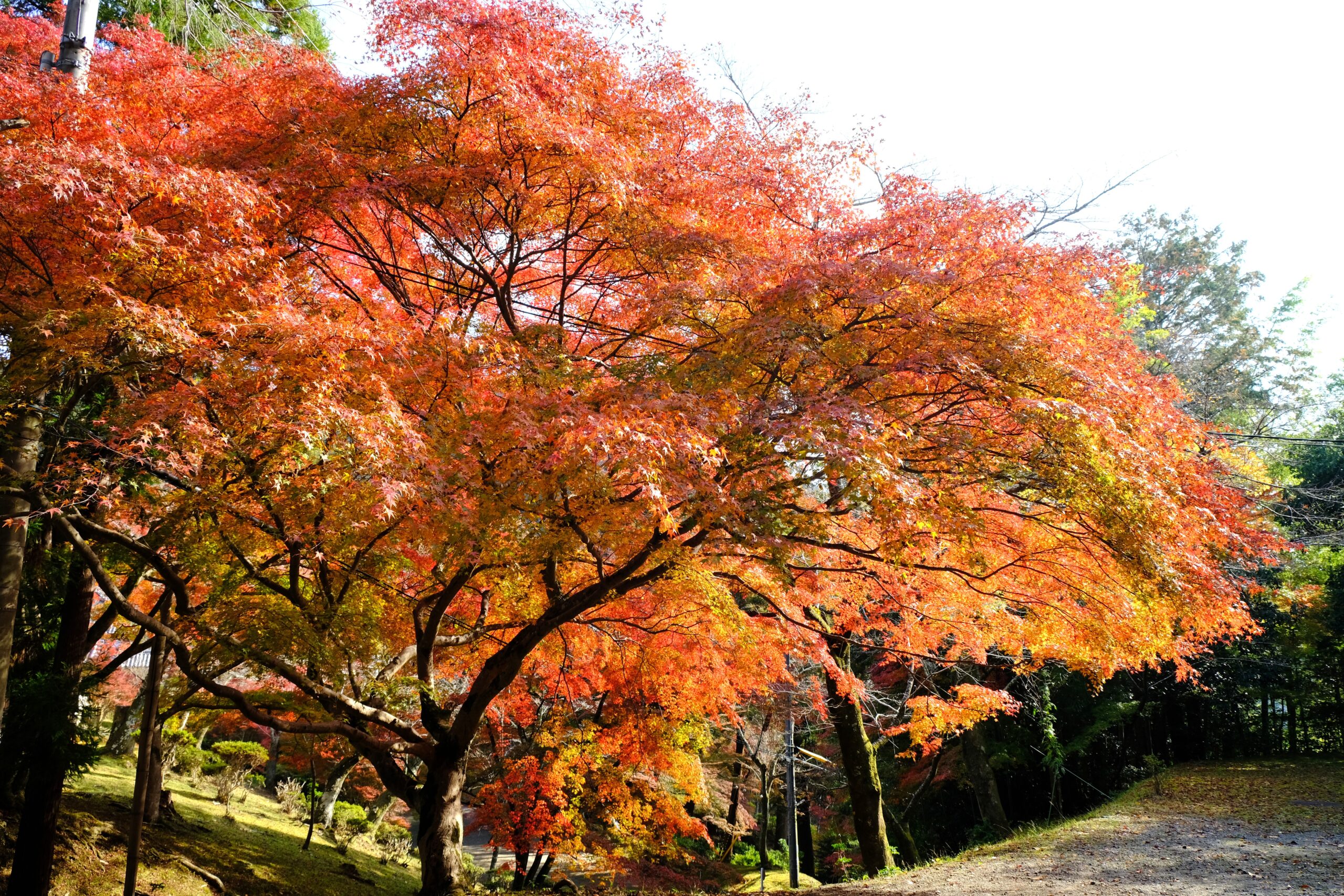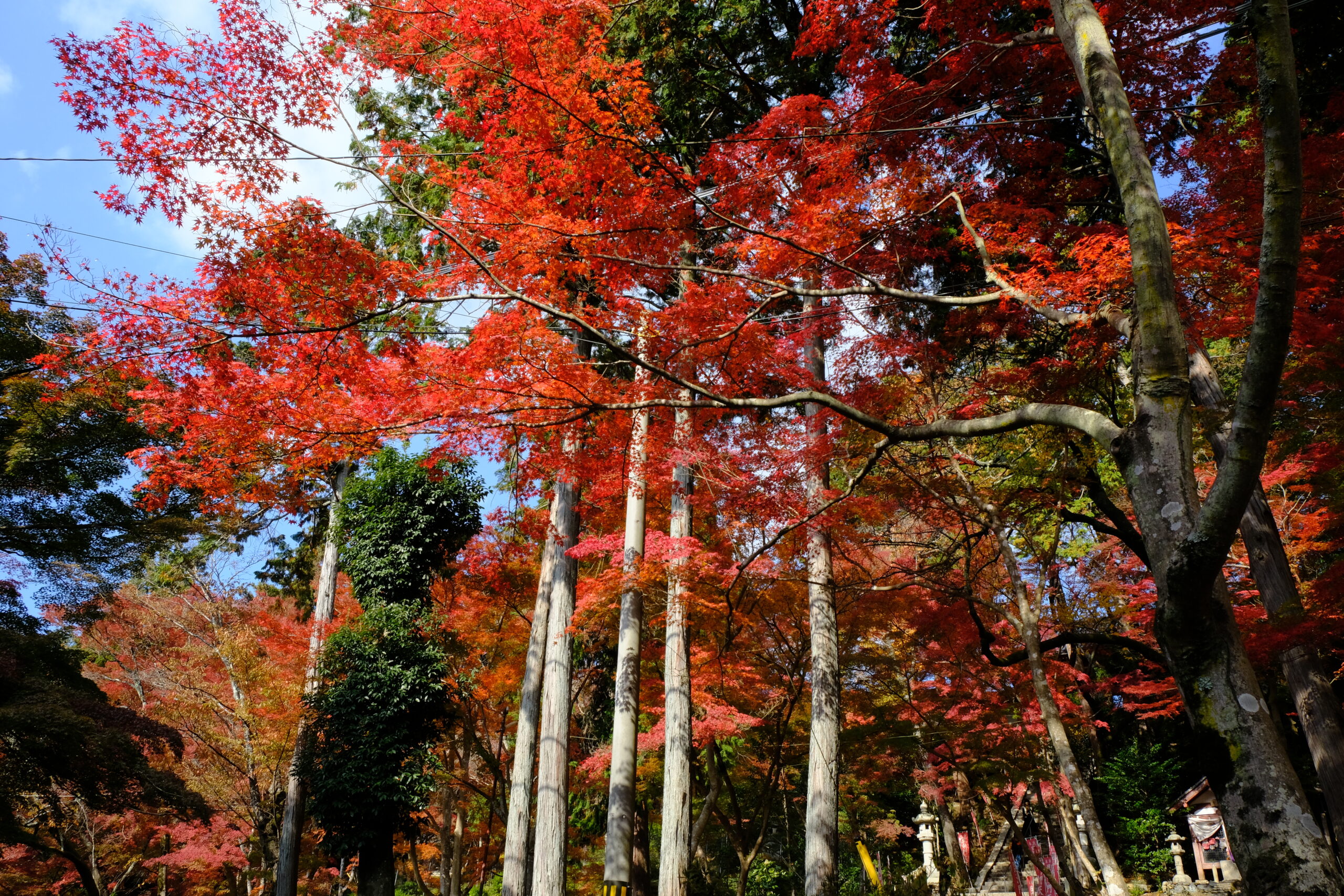 もう少しすると下に落ち葉がたまり赤い落ち葉のじゅうたんが見れます。