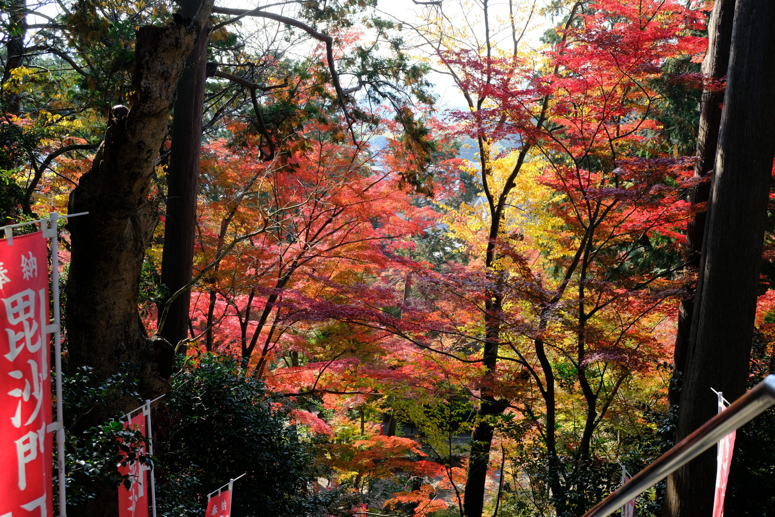 2,3年前から、夏の酷暑のためか秋の紅葉はくすんだ色をしていて、前の綺麗な紅葉を覚えているためちょっとがっかりしていました。それでも秋になると紅葉情報をネットで調べて今年はどこに行こうかと心ワクワクしてしまいます。今年は11月中旬、山科の毘沙門堂門跡に行きました。山科は大学を卒業して5,6年住んでいた場所ですが、そのころはお寺や風景には全く興味がなく、この近くに住んでいたにもかかわらず、その存在を全く知りませんでした。