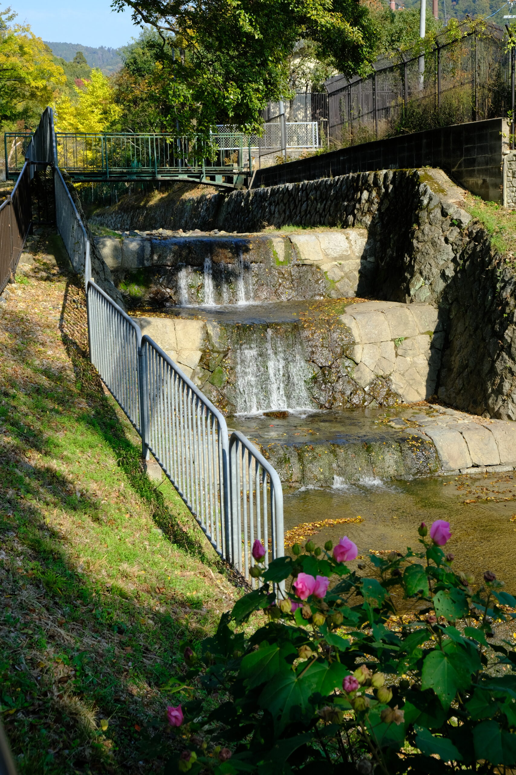選んだ3のルートは、わりと人と行きかいましたが、山奥のような雰囲気でした。紅葉はちょうど見頃で、新鮮な空気をお腹一杯吸い込むことができました。道は途中から山道に変わりましたが、歩きにくいことはありません。琵琶湖疎水を渡り、水路閣や小さな滝を眺めながらの散策でした。この日は天気も良く、落ち葉を踏みしめながら歩く感触もよかったのですが、雨が降った後とかは滑りやすくなっているかもしれません。