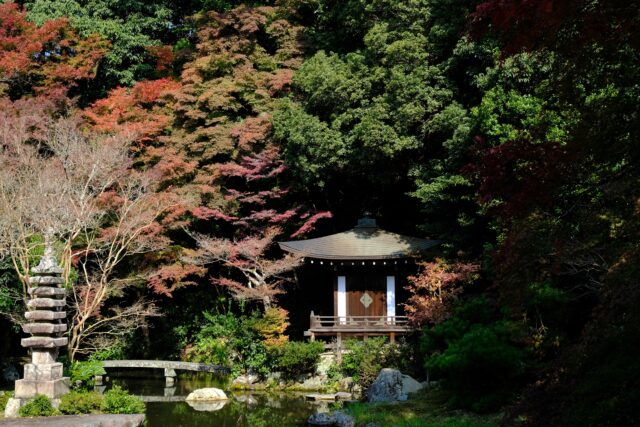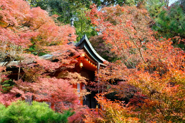 お寺の周りに広葉樹がたくさんあり、それがどれもちょうど見頃で、とても見ごたえがありました。晩翠園と本堂、隣の高台弁才天のあたりの紅葉は特にすばらしかったです。