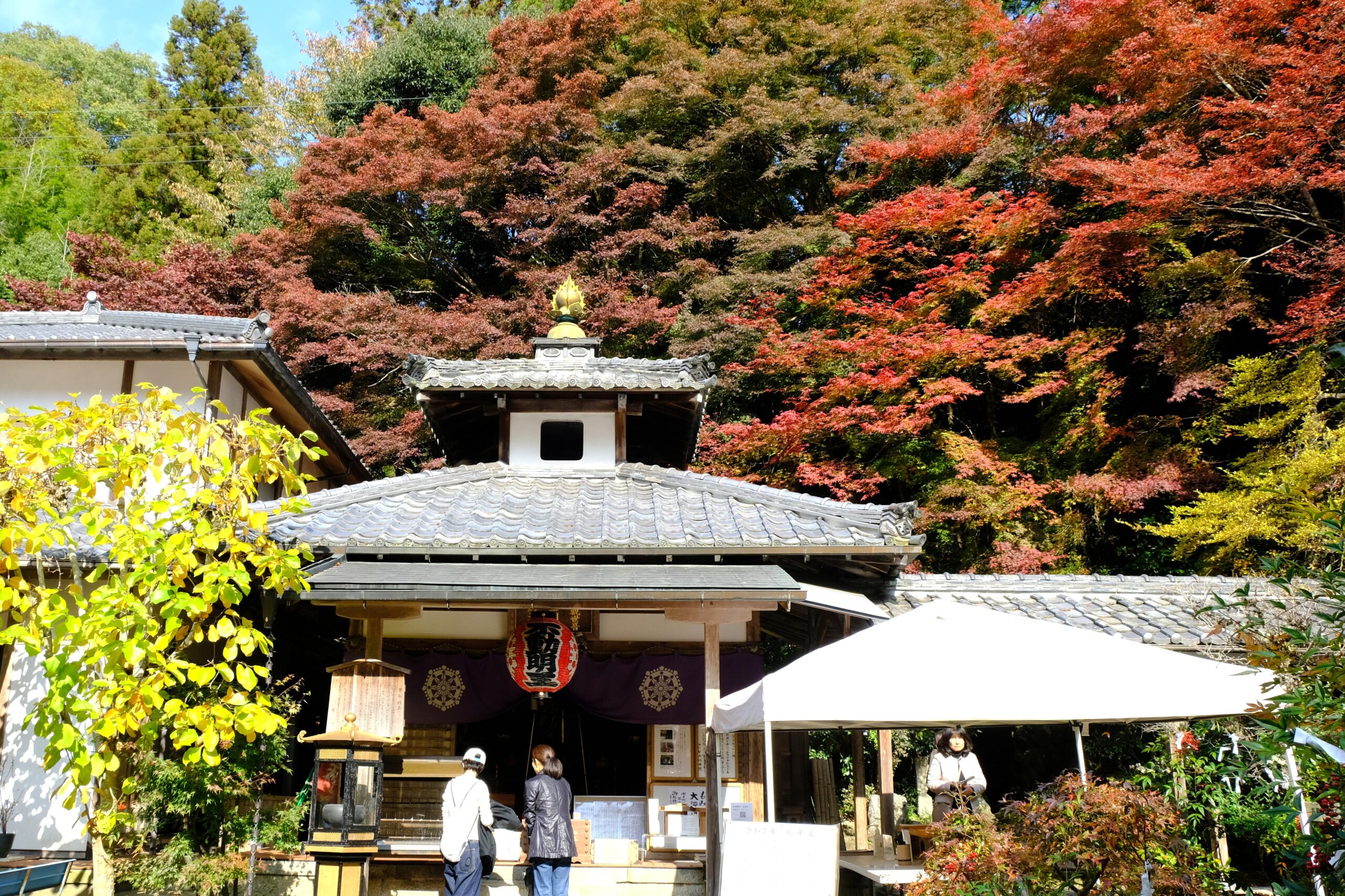 毘沙門堂を出て、裏参道を通り5分ほどで山科聖天に着きました。急な山道でしたが、手すりの付いた階段でしたので楽に行けたと思います。山科聖天は、毘沙門堂門跡の塔頭で、ご本尊は大聖歓喜天です。毘沙門堂が山科に再建されたのと同時(1665年)に創建されたそうです。山の中にあるしっとり落ち着いたお寺でした。