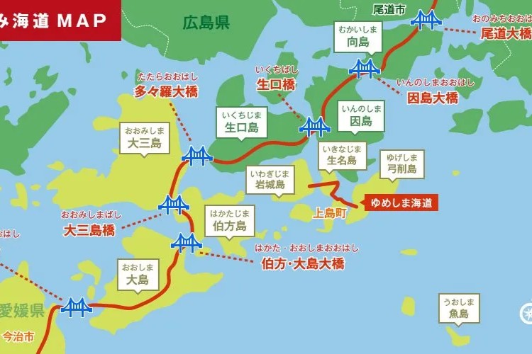 この水道にたくさんある島の間に橋がかけられ、1999年5月、ついに瀬戸内しまなみ海道が開通して、四国の今治市と尾道市は道路で結ばれました。それでも、尾道と瀬戸内海に浮かぶ様々な島を結ぶフェリーは朝から晩まで頻繁に行き来しています。