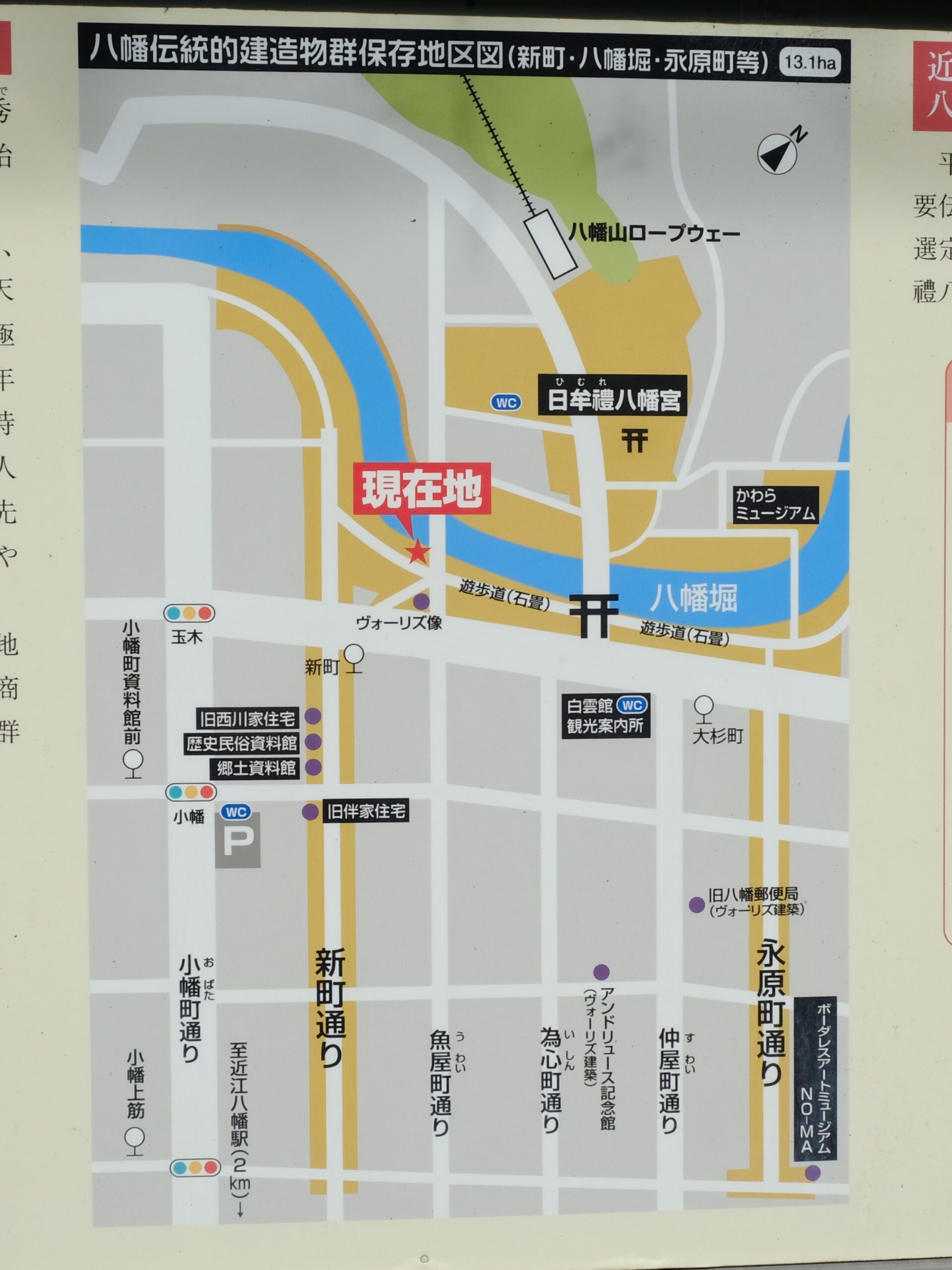 では、近世の風情が残っている新町通りや八幡堀沿いの近江商人が築いた町並を見ていきましょう。