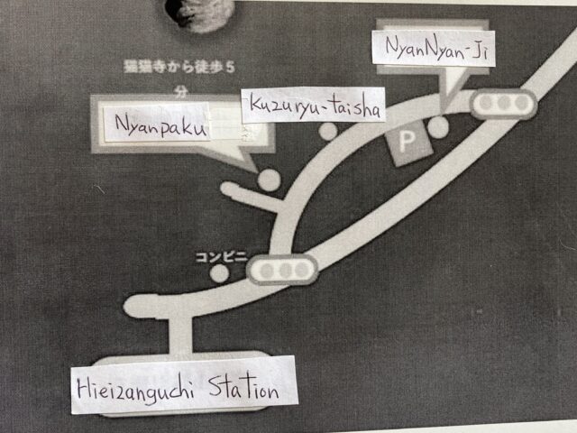 First of all, as you see, NyanNyan-ji isn’t a real temple, but a private gallery or museum. The term “Nya” in NyanNyan-Ji is cat’s meow in Japanese. In the area, there is Kuzuryu-taisha Shrine, whish is a real Shinto shrine. Furthermore, there is a Museum of Cat History (Nyanpaku). I’m sure you can have an enjoyable time there!